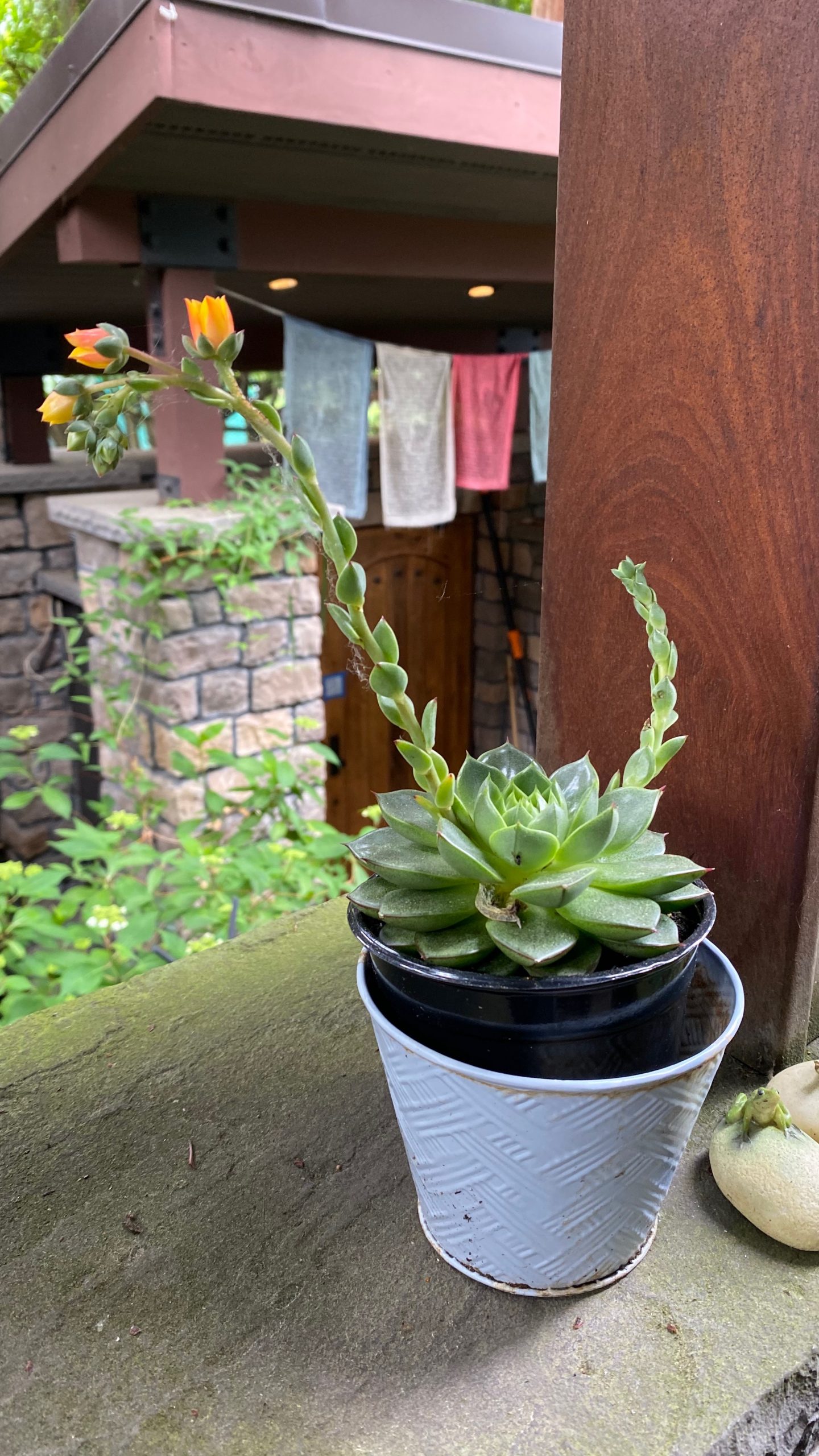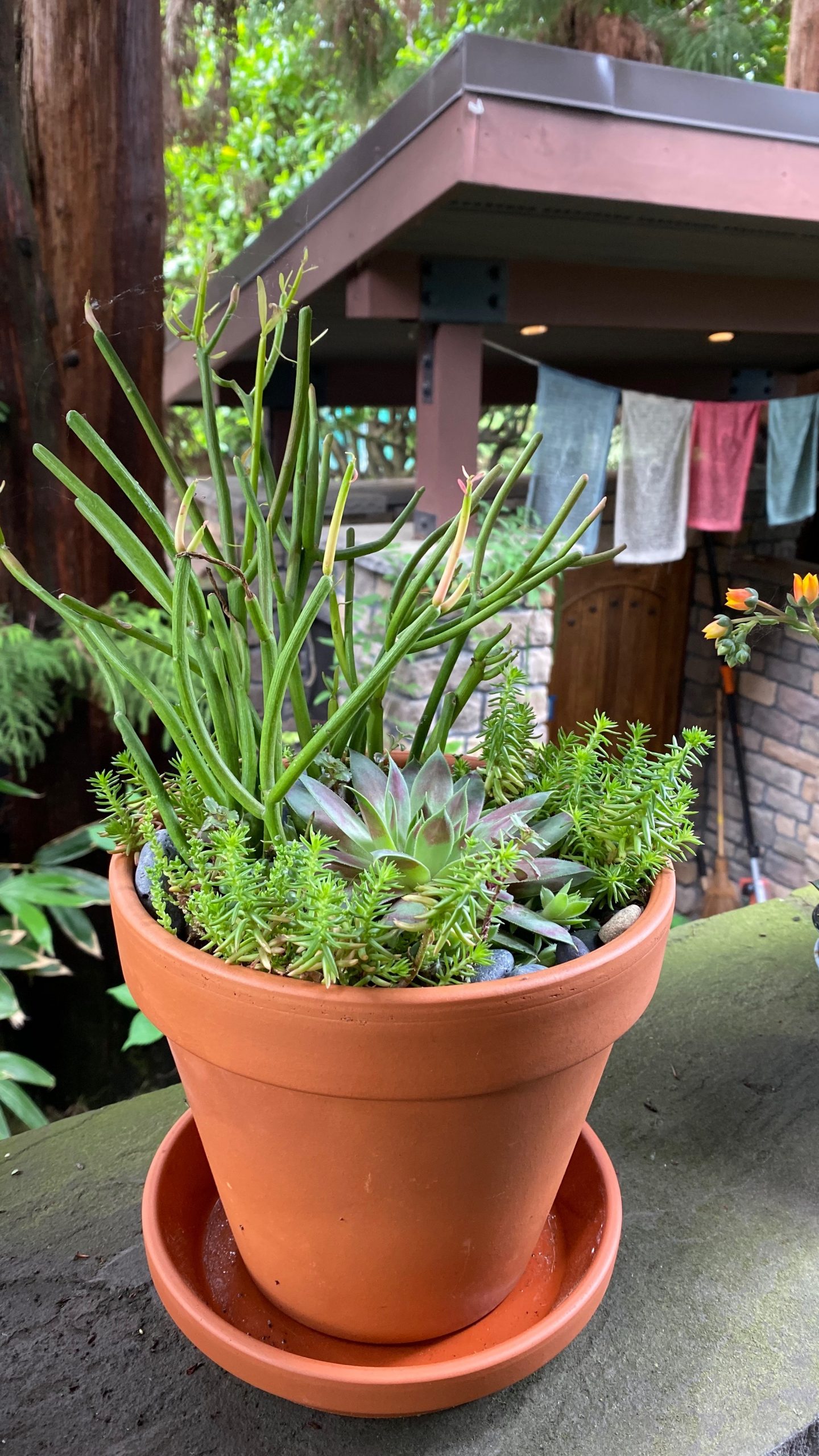 For recent birthday, younger son chose all these succulents, potted and delivered to me at a social distance. ❤️ According to “Picture This” app, I identified as the following: Euphorbia tirucalli ‘Pencil cactus’, Sempervivum tectorum ‘Bullock’s beard’, Peperomia ferreyrae, Pincoushin peperomia (perfect for the beginning online North Seattle CC sewing class I just started taking), Sedum lineare ‘Carpet sedum’, and the wonderful blooming Echeveria that did not quite fit, Echeveria secunda Blue echeveria.